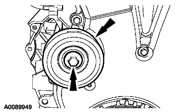 11. If equipped, loosen the bolt and remove the accessory drive belt idler pulley.