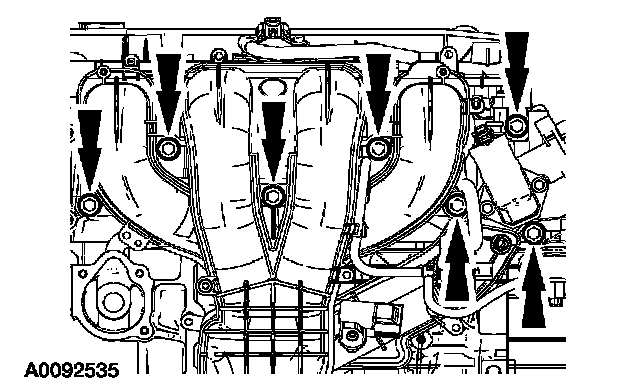 34. Disconnect the Positive Crankcase Ventilation (PCV) hose and remove the intake manifold.