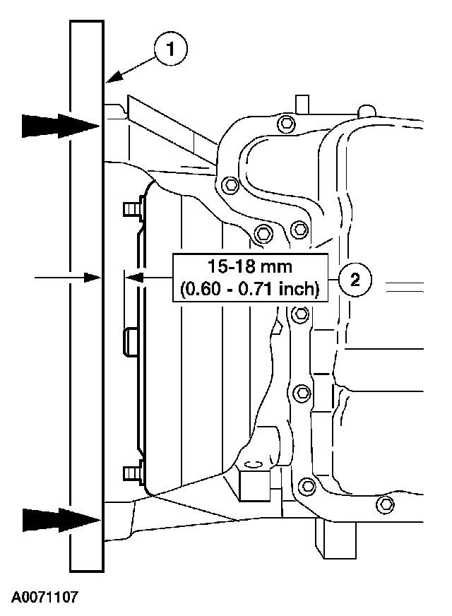 2 Check the installation depth between the transaxle flange and the torque converter centering spigot for the correct clearance.
