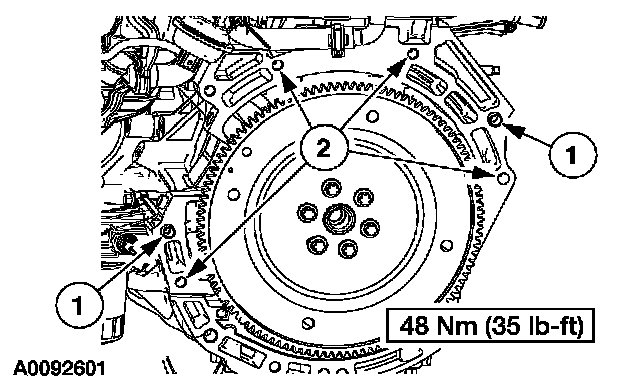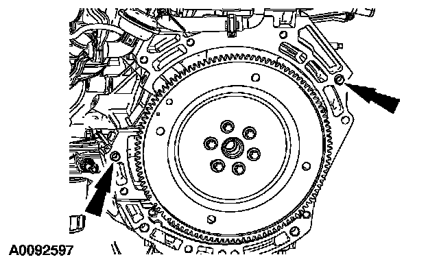 9. NOTE: If new parts are not being used, be sure to align the marks on the flexplate and the stud made during engine removal.