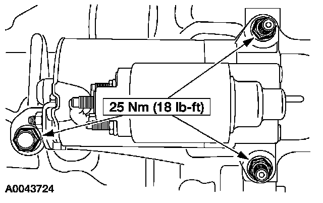 17. Install the starter motor and the bolts.