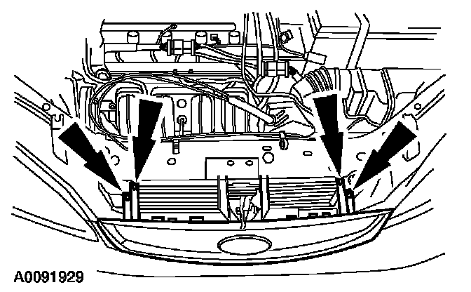 1. Remove the pin-type retainers and the upper radiator air deflector.