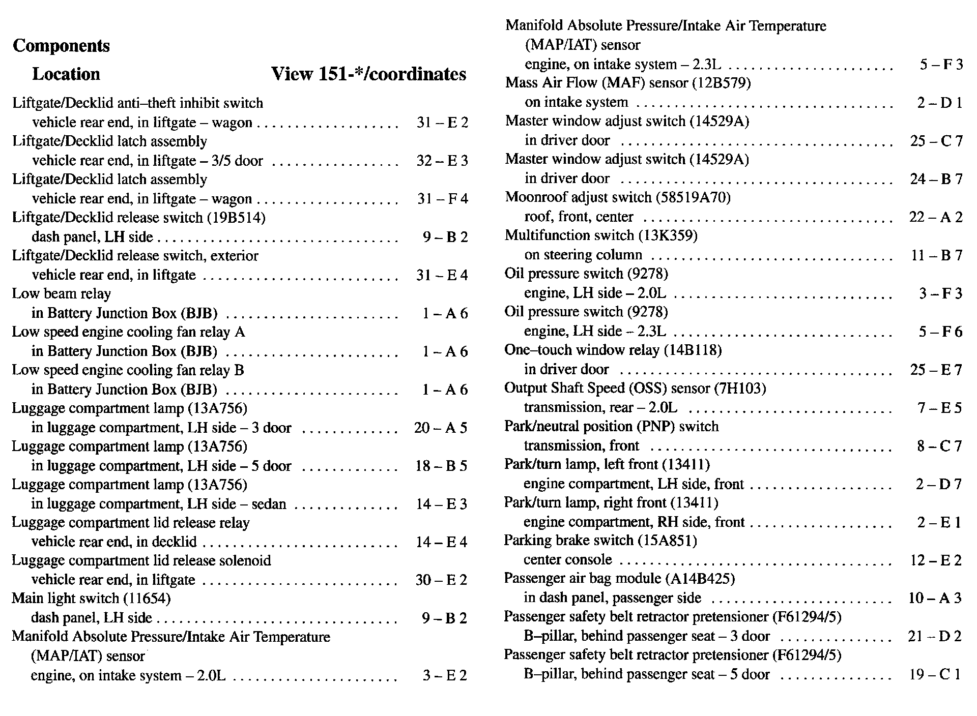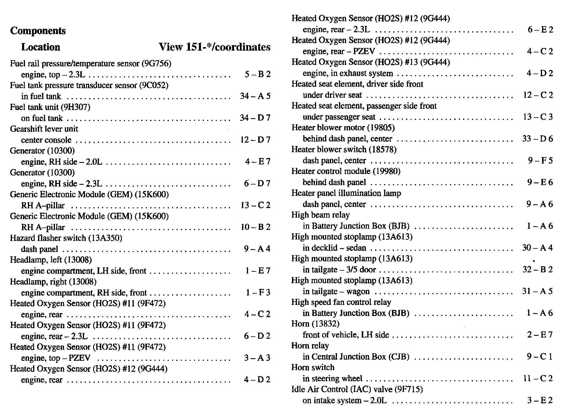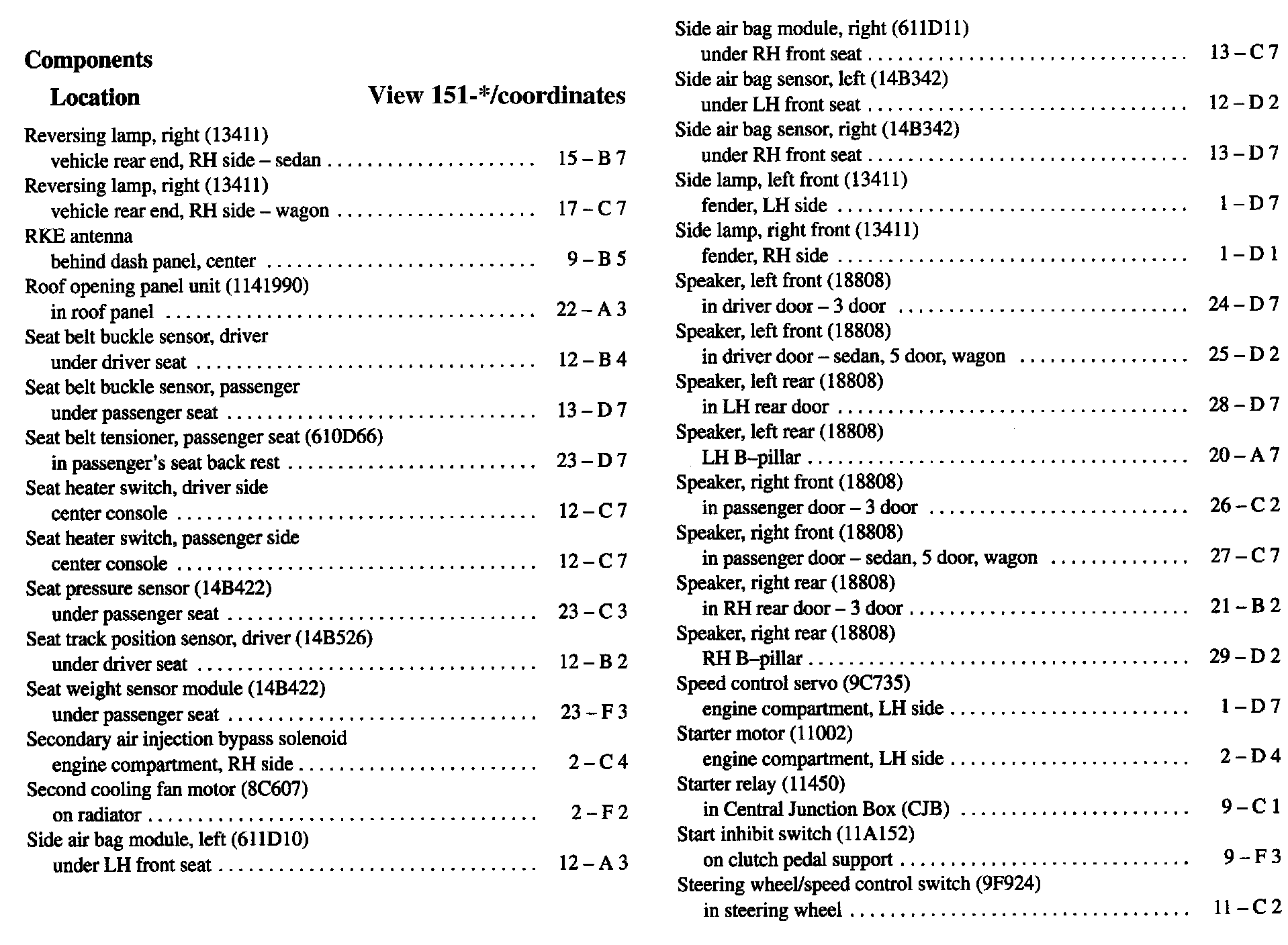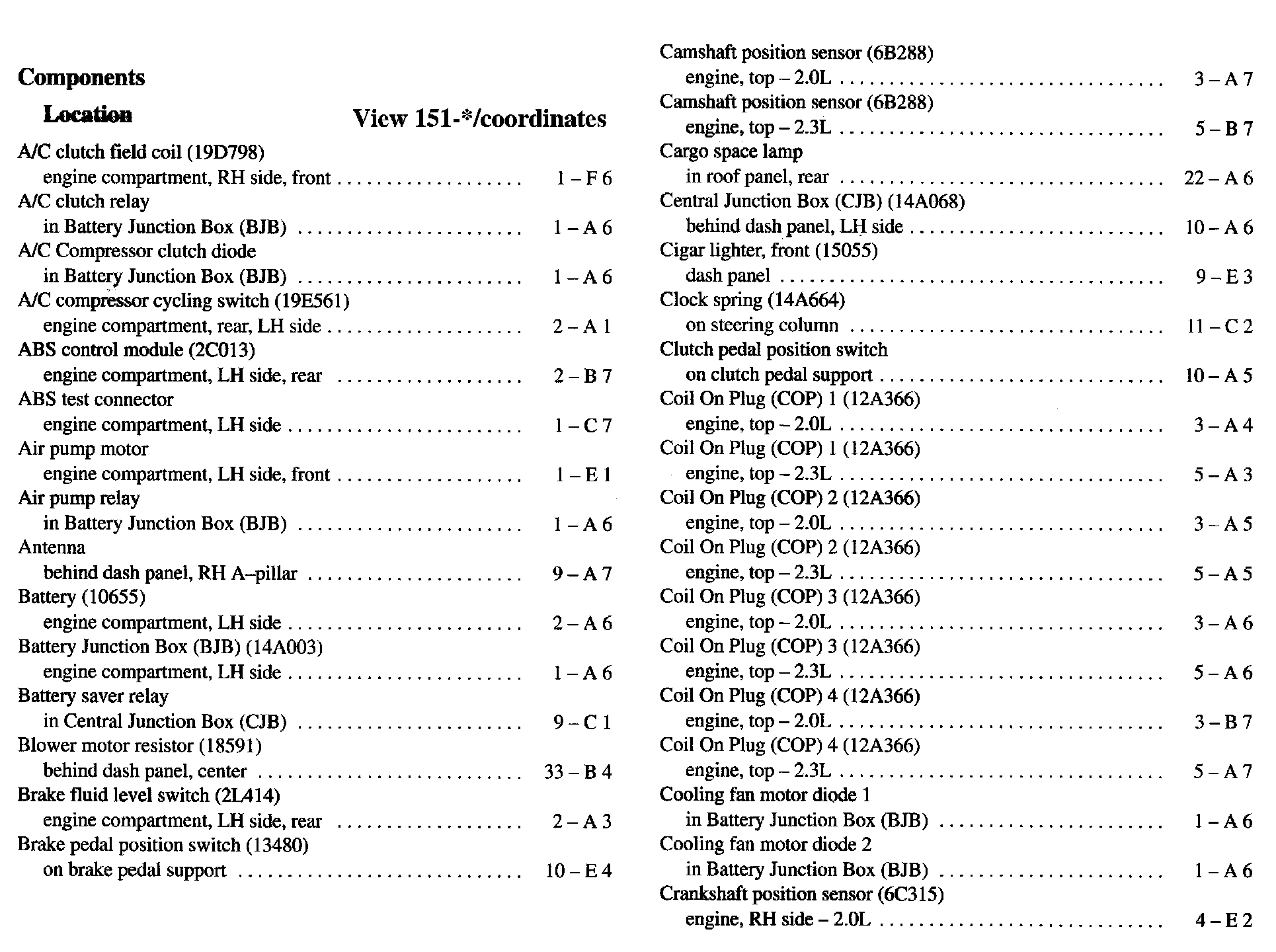 Component Location Index