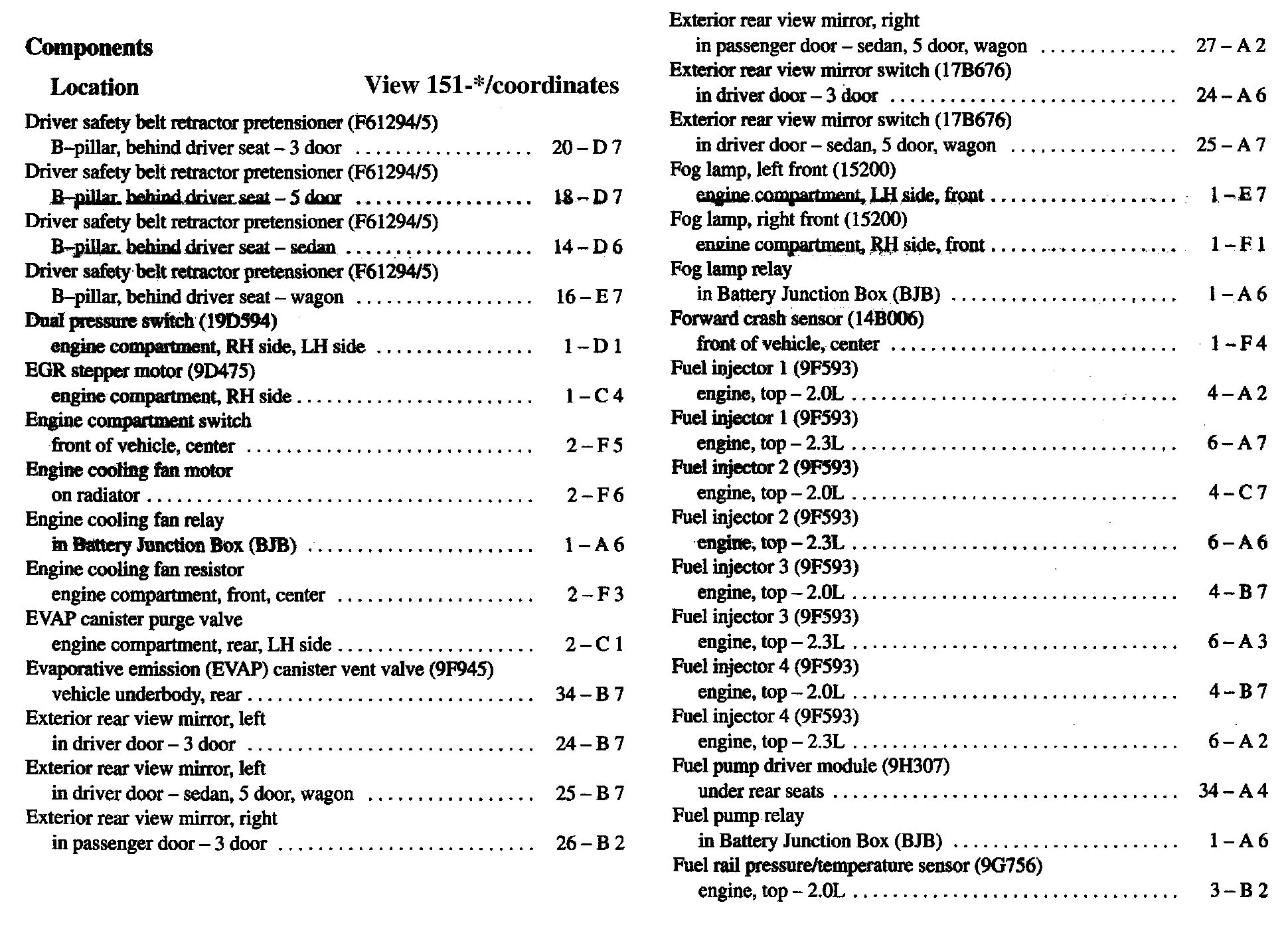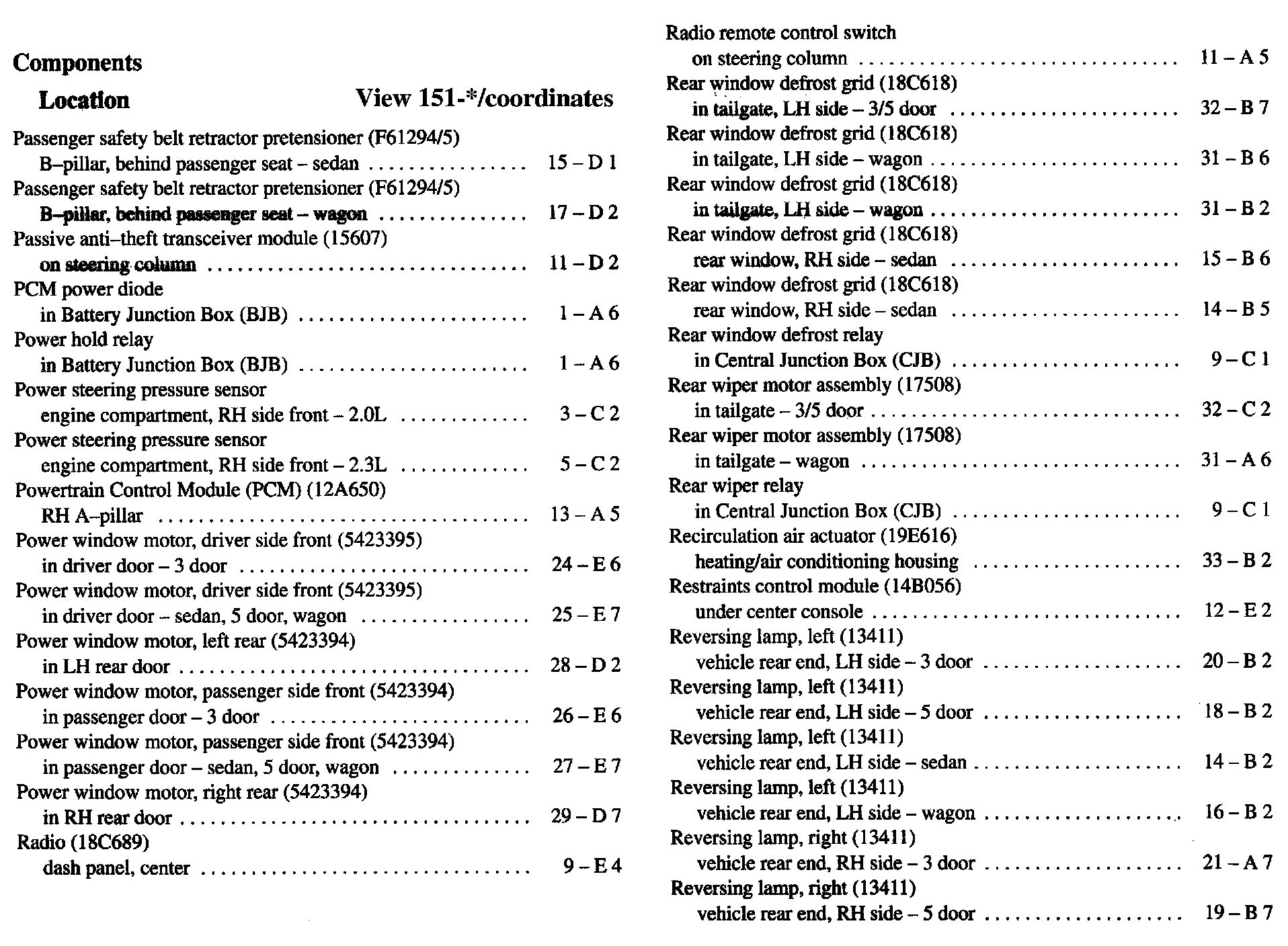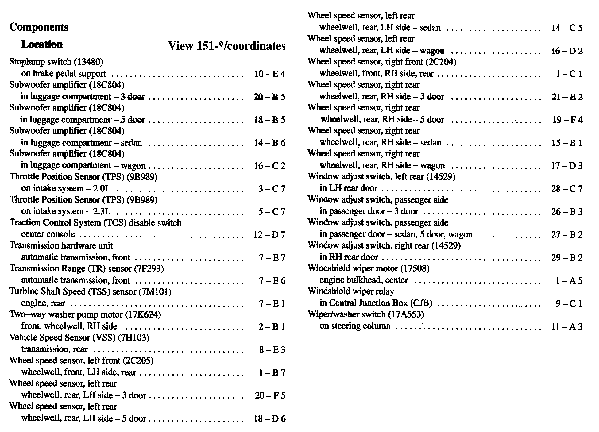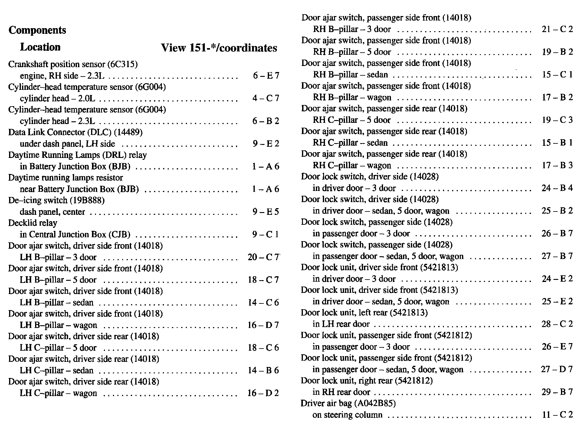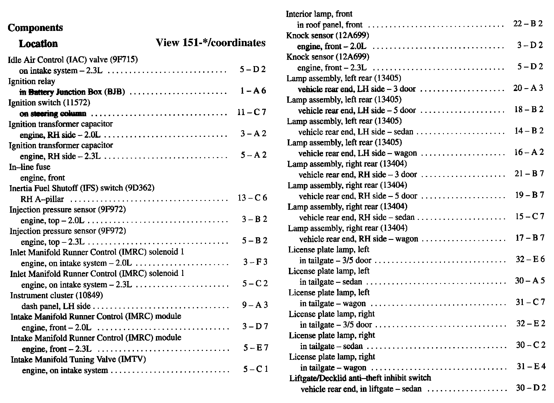 Component Location Index