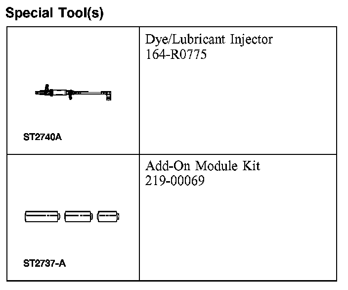 2. Assemble the dye/lubricant injector using the correct adapters to match the amount of PAG oil to be injected.