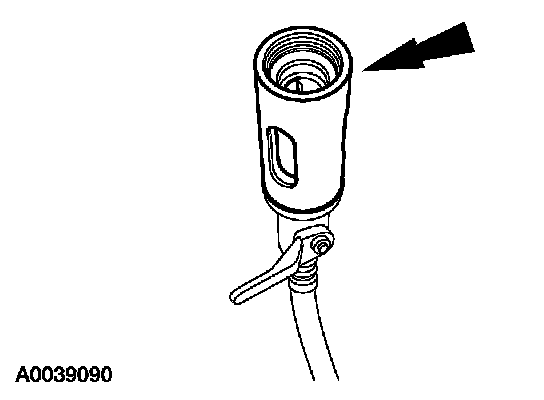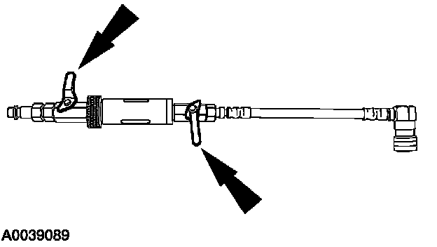 5. Install the dye/lubricant injector between the low-side service gauge port valve and the refrigerant service station or manifold gauge set.