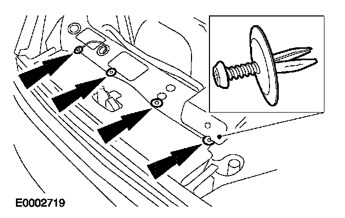 4. Remove the front impact severity sensor bolts from the radiator grille opening panel.