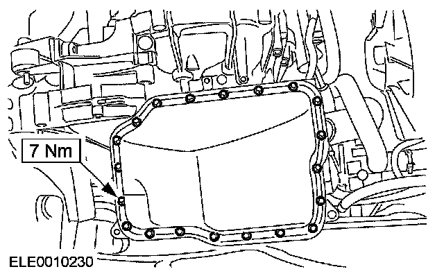 2. NOTE: Position a suitable drain pan under the fluid pan.