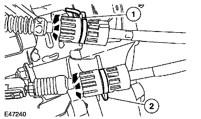 3. Disconnect the gearshift cables from the transaxle.