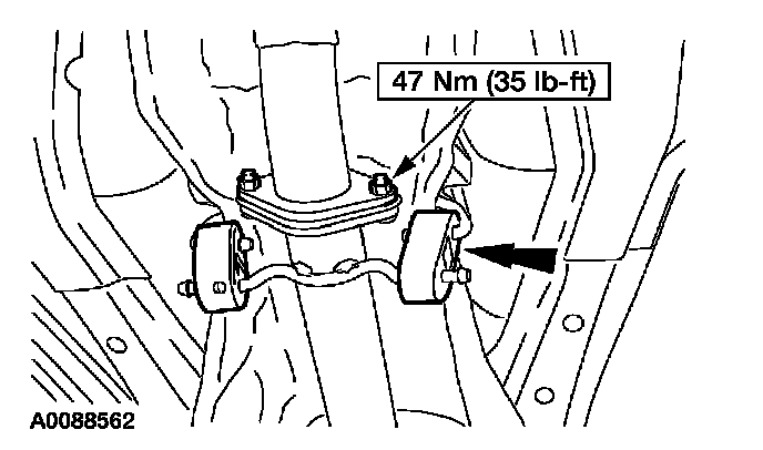 17. Disconnect the center exhaust hanger. Lower the exhaust system and support it with wire.