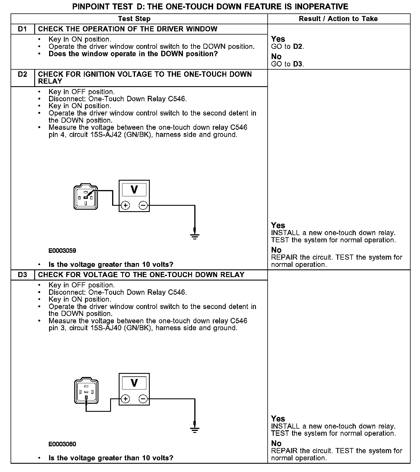 PINPOINT TEST D: THE ONE-TOUCH DOWN FEATURE IS INOPERATIVE