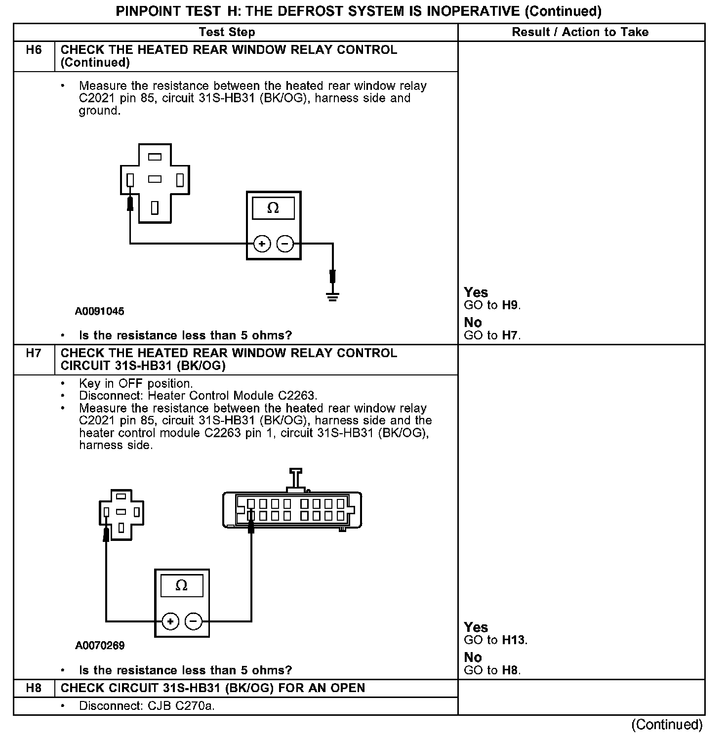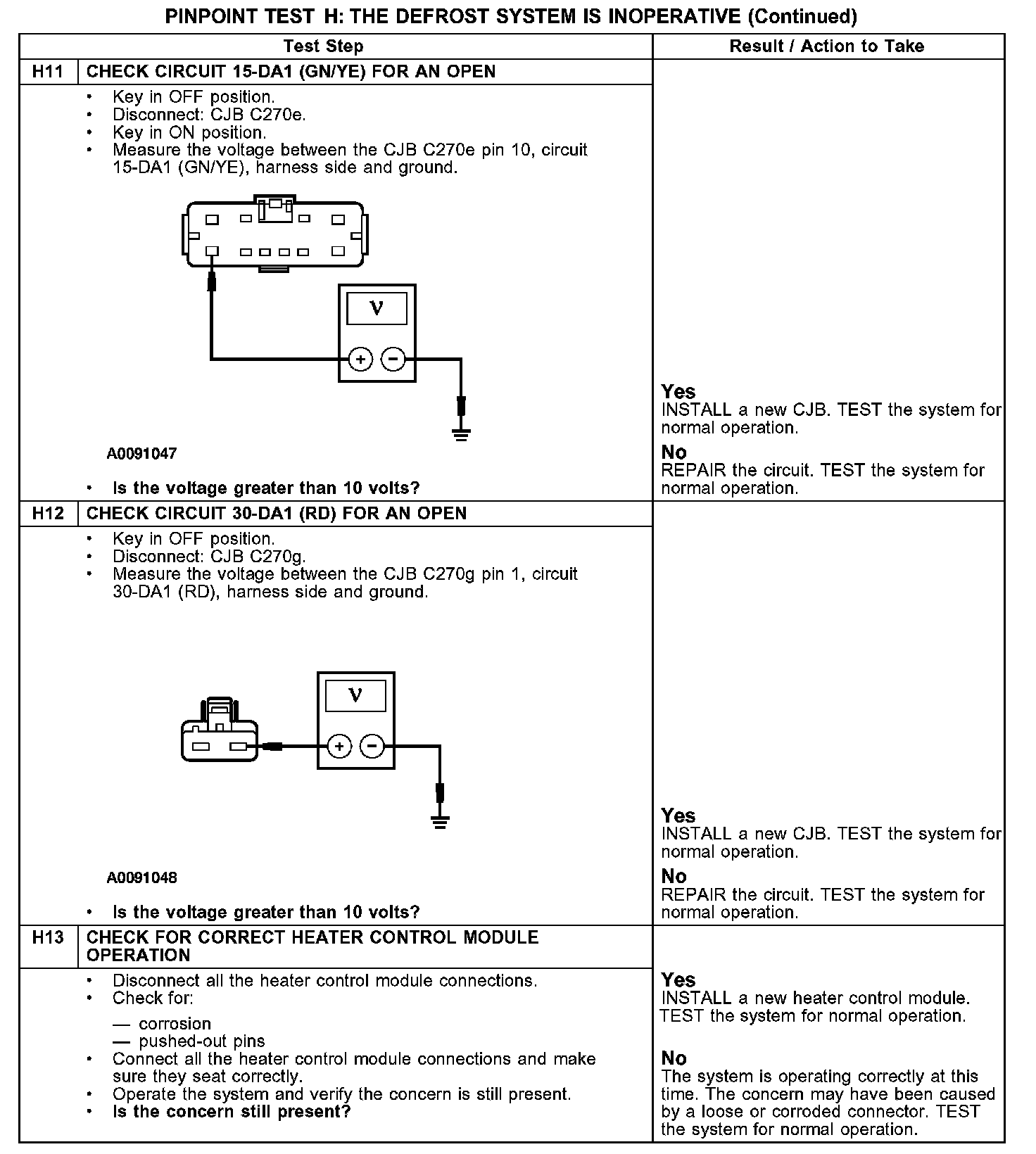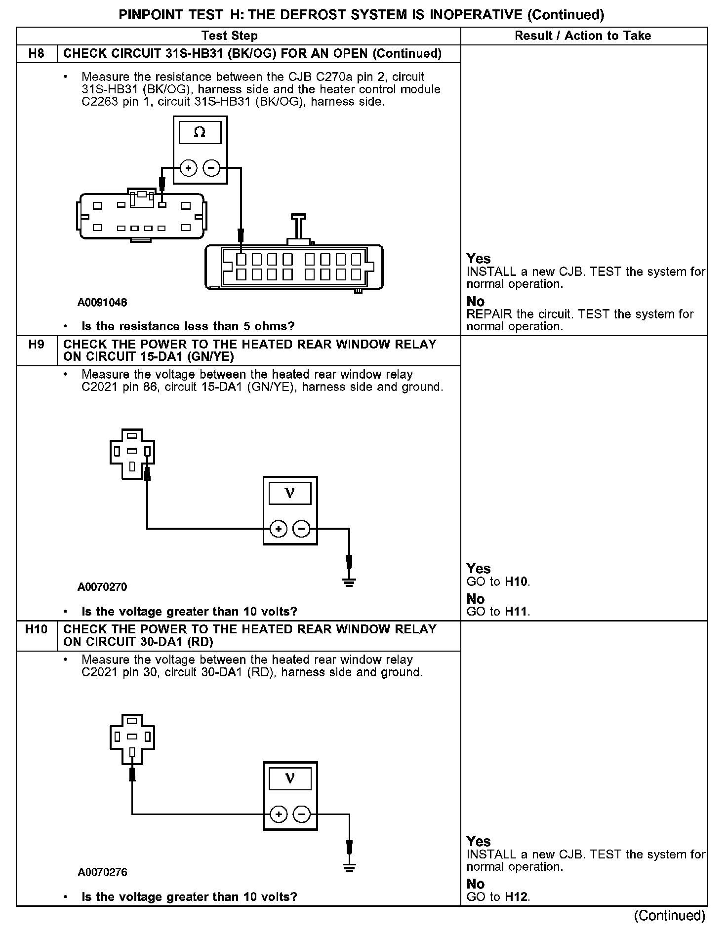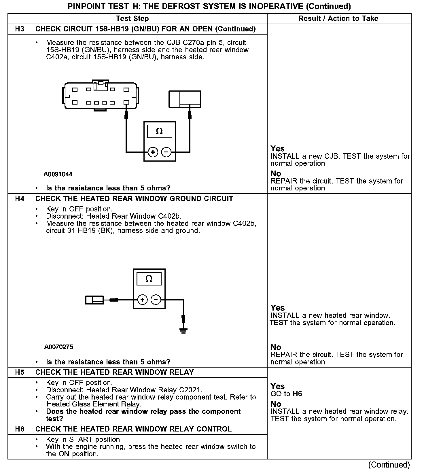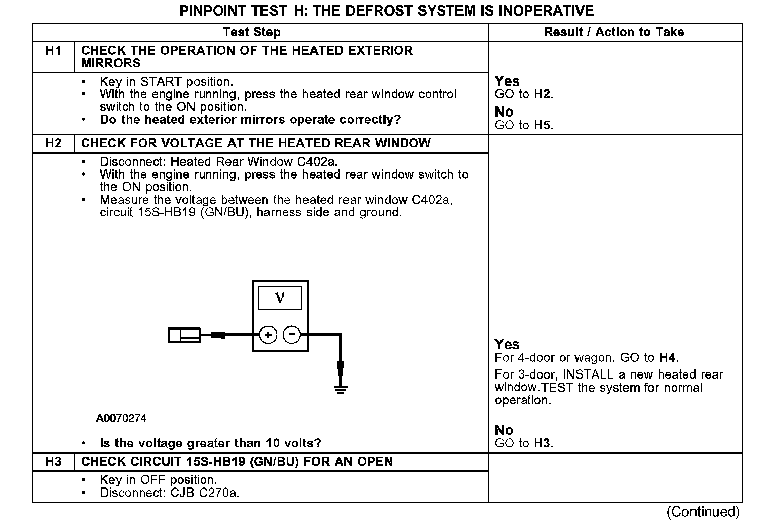 PINPOINT TEST H: THE DEFROST SYSTEM IS INOPERATIVE