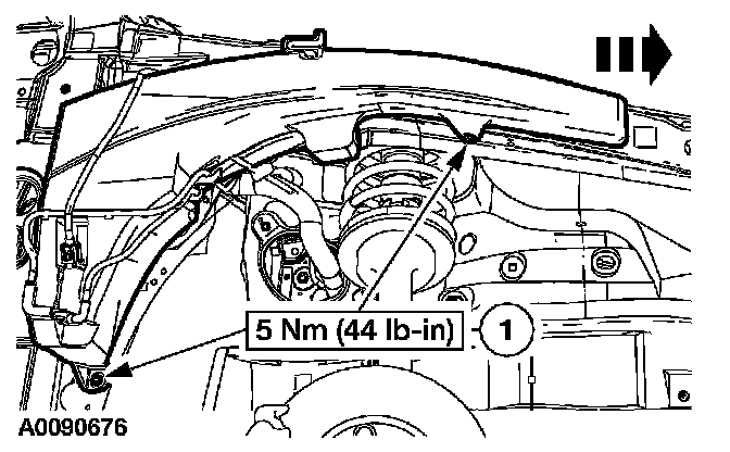 - Slide the windshield washer reservoir assembly forward to release it from the fender reinforcement.