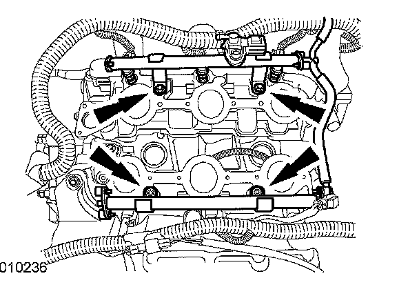 111. Position the fuel rail and injectors and install the 4 bolts.