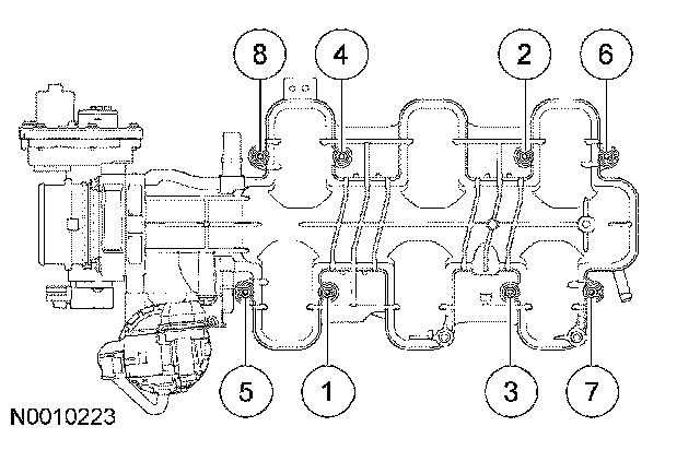 123. NOTE: Clean and inspect all sealing surfaces. Inspect and install new intake manifold gaskets as necessary.