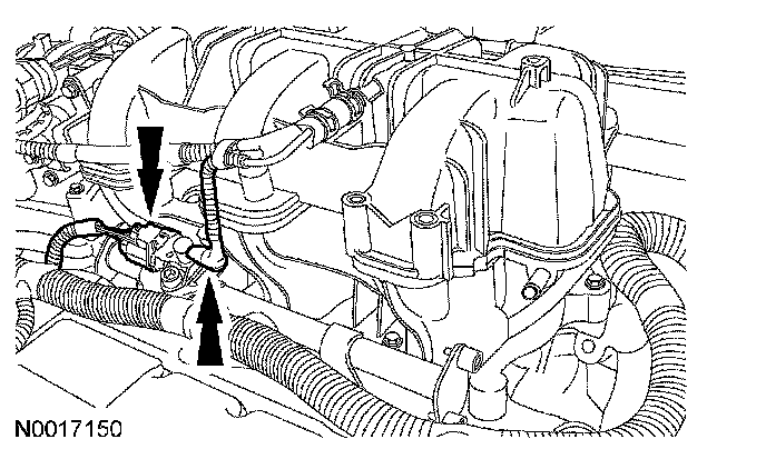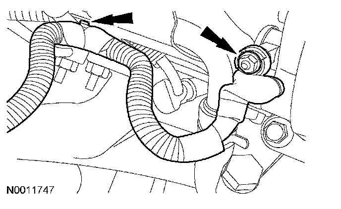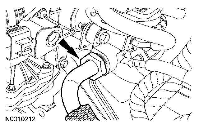 127. Position the Exhaust Gas Recirculation (EGR) tube. Connect the fitting to the LH exhaust manifold.