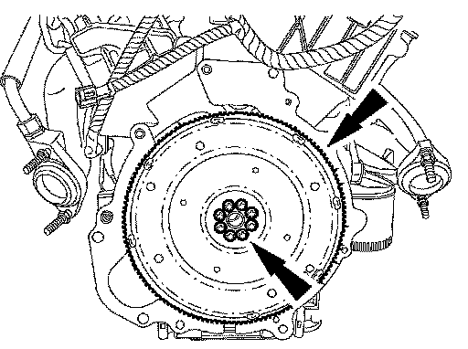 1. Remove the 8 bolts and the flexplate or flywheel.
