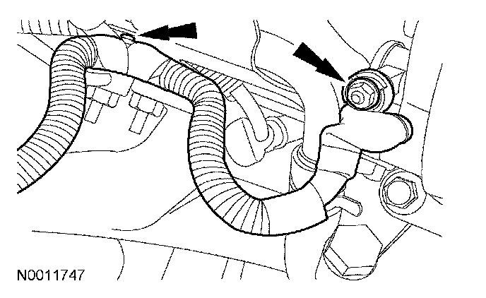 11. Disconnect the Positive Crankcase Ventilation (PCV) tube fittings and remove the tube.