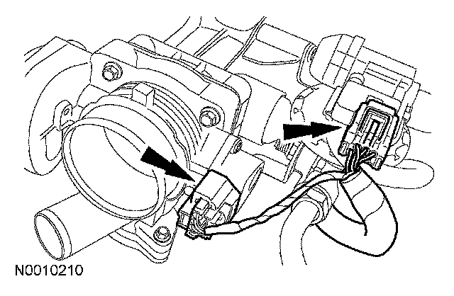 7. Disconnect the Exhaust Gas Recirculation (EGR) system module and Throttle Position (TP) sensor electrical connectors.