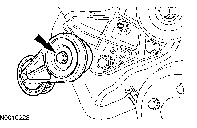 17. Remove the bolt and the belt tensioner.