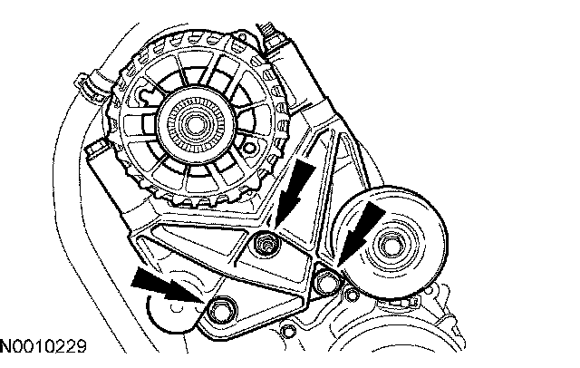 18. Remove the 2 bolts, the nut and the generator and bracket.