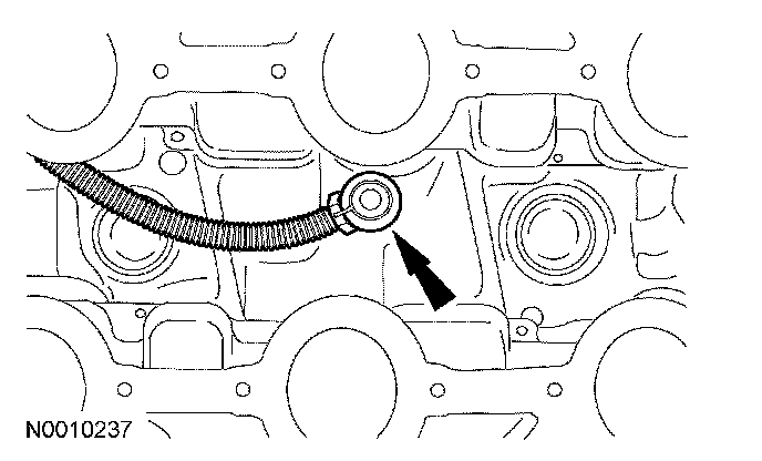 CAUTION: During engine repair procedures, cleanliness is extremely important. Any foreign material, including any material created while cleaning gasket surfaces that enters the oil passages, coolant passages or the oil pan, can cause engine failure.
