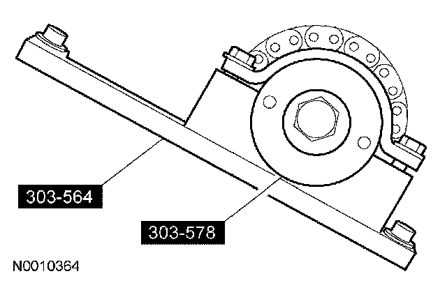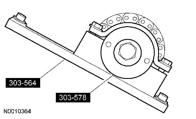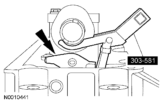 44. Install the special tools on the LH cylinder head and tighten the top 2 clamp bolts to 10 Nm (89 inch lbs.).