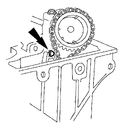 Remove the RH camshaft sprocket from the timing chain. Install a rubber band around the cassette and the timing chain.