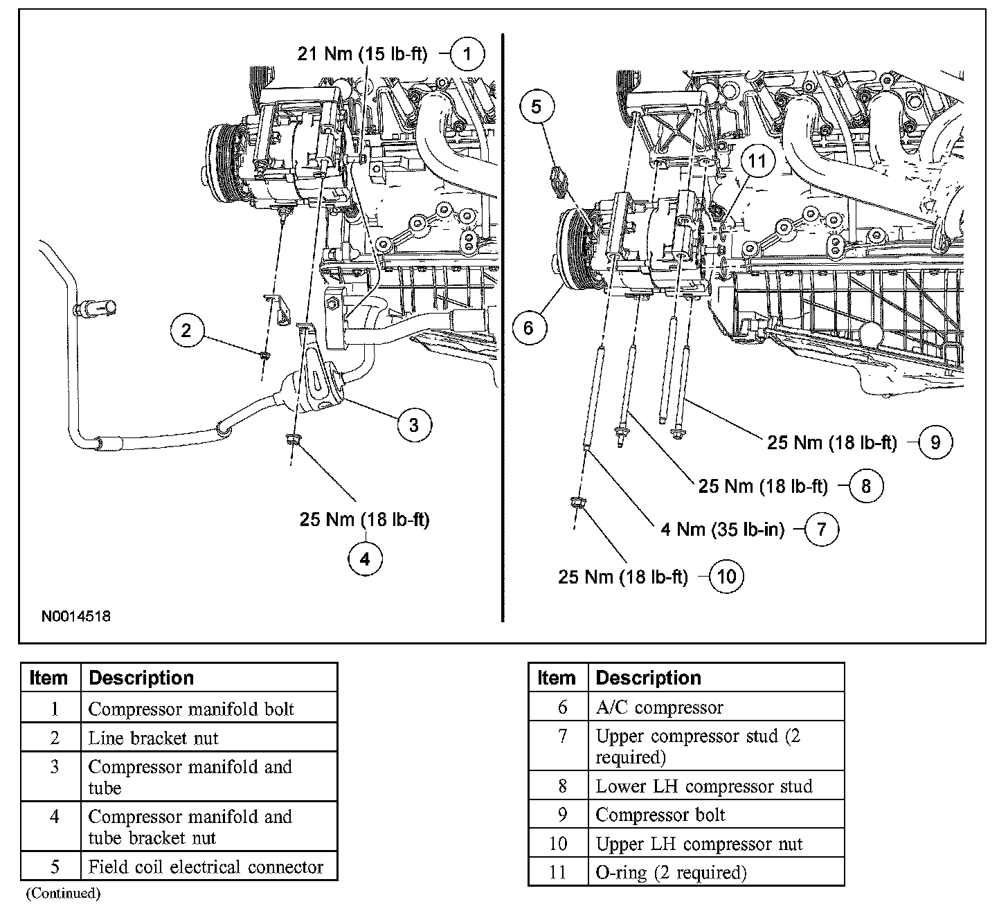 - If installing a new A/C compressor, the A/C clutch disc and hub, A/C compressor pulley and A/C clutch field coil must be inspected and transferred from the old unit to the new unit if suitable for reuse.