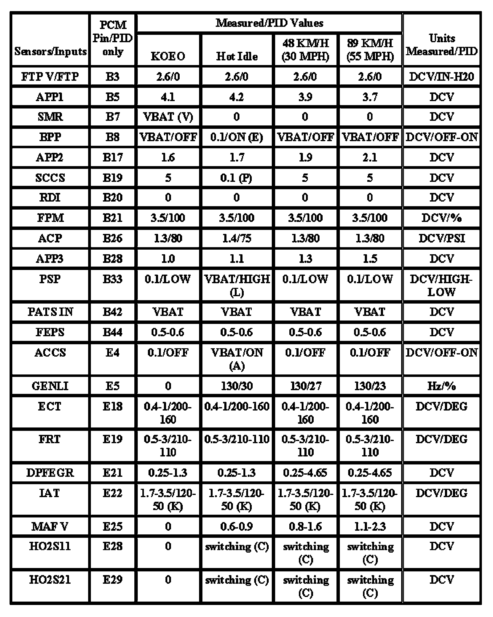 The Typical Diagnostic Reference Value Charts do not display fault PIDs. These are PIDs which indicate a hard fault with the circuit. They display a value of "YES" or "NO" and are PIDs ending with an "F".