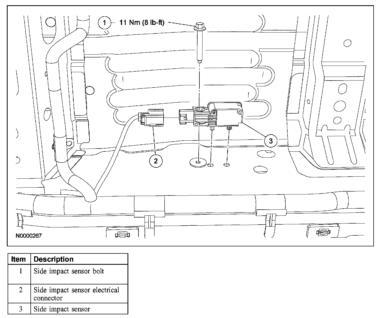 5. WARNING: The tightening torque of the side impact sensor retaining bolt is critical for correct system operation.