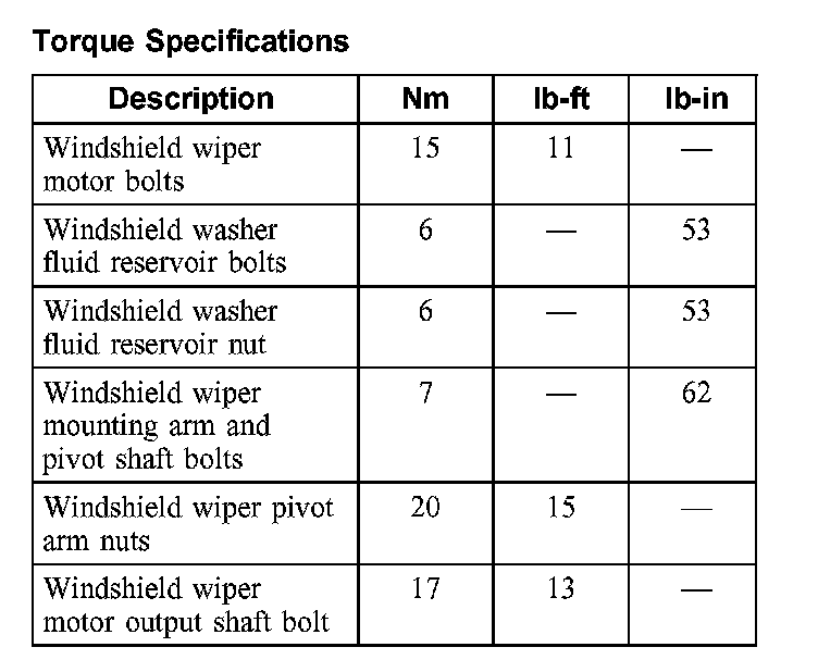 Torque Specifications: