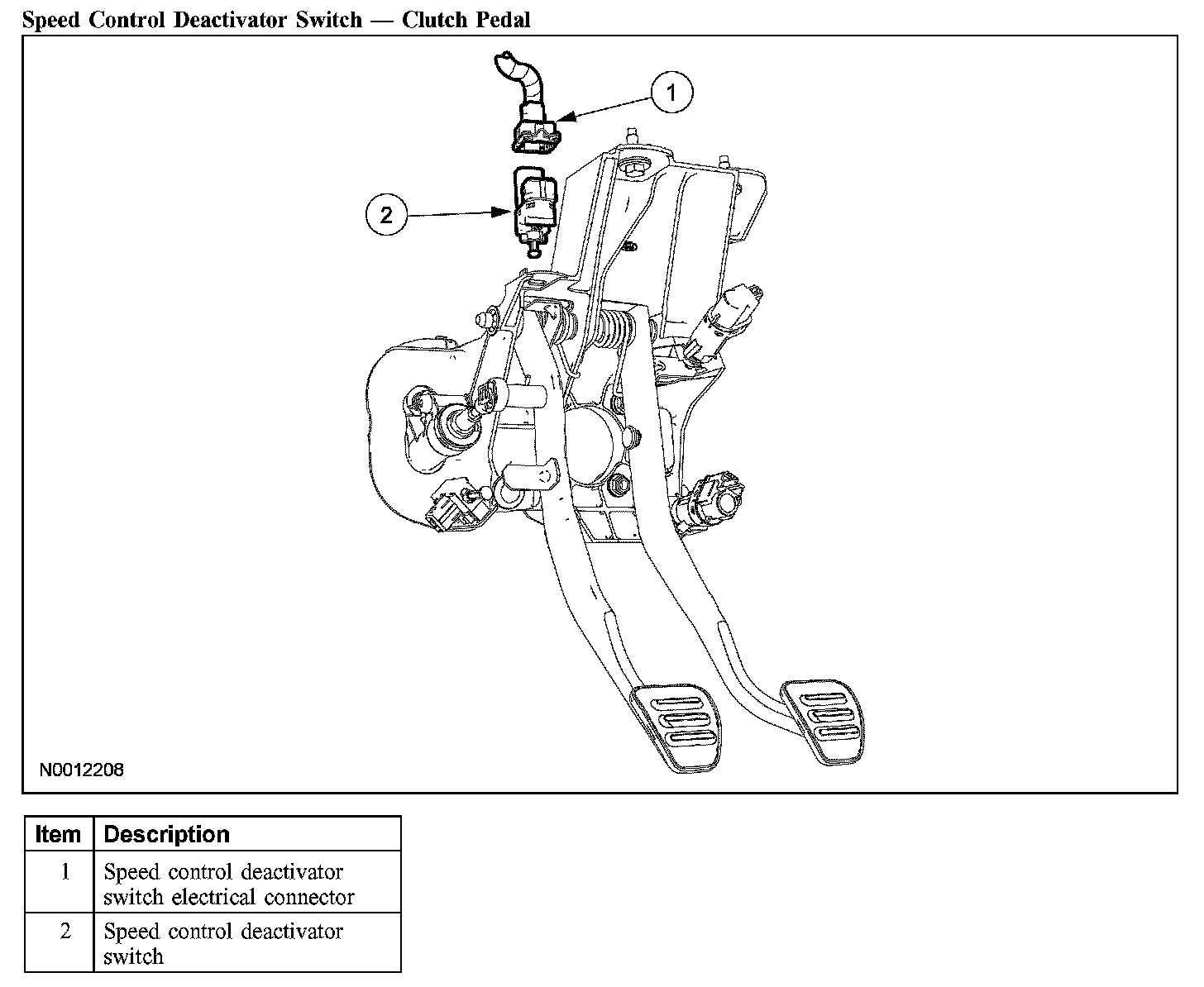 1. CAUTION: Do not press the pedal when removing or installing the speed control deactivator switch, as the switch will be damaged.