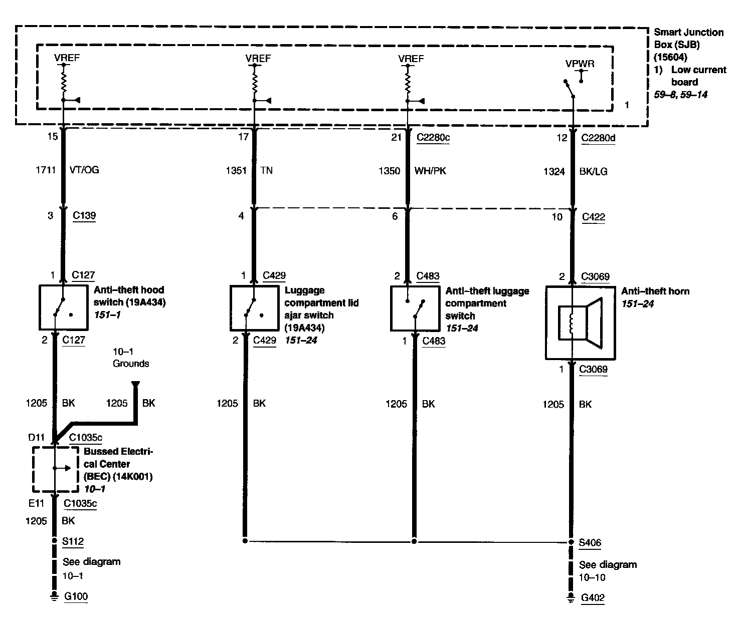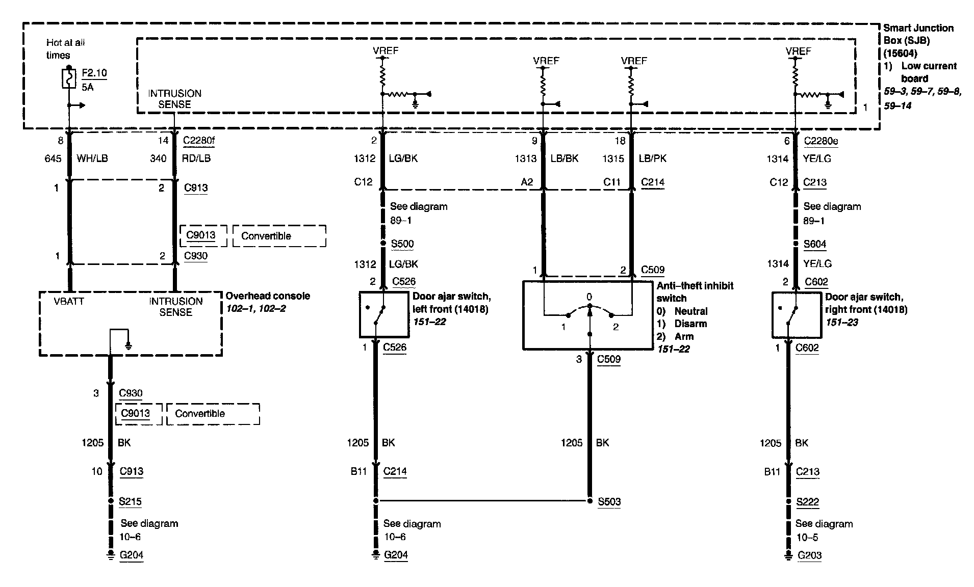 Locations: Location Views (reference numbers starting with 151-) referred to within these diagrams can be found at Component Location Views. Component Location Views