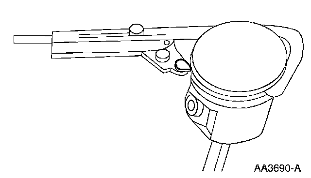 1. WARNING: Cover the end of the pin bore with a hand or shop rag when removing the retainer ring, since it has a tendency to spring out. Wear eye protection.