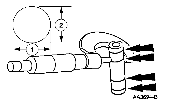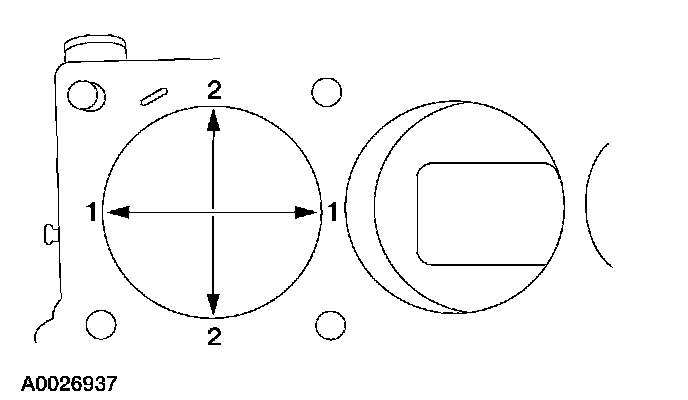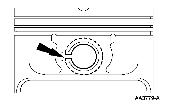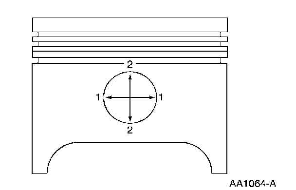 1. Measure the piston pin diameter in two directions at the points shown. Verify the diameter is within specification.