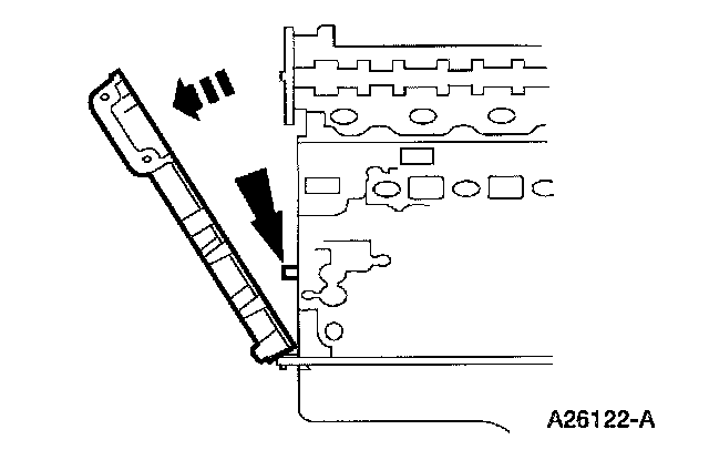 Apply a bead of silicone gasket and sealant along the cylinder head to cylinder block surface and the oil pan to cylinder block surface. at the locations shown.