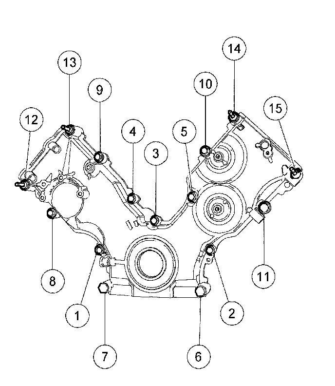 3. Tighten the engine front cover fasteners in the sequence shown to 25 Nm (18 ft. lbs.).