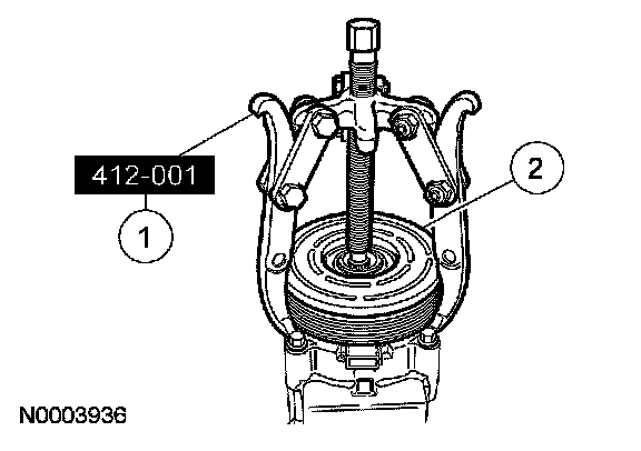 2. CAUTION: Do not use air tools. Damage to the A/C clutch field coil or A/C compressor may result.