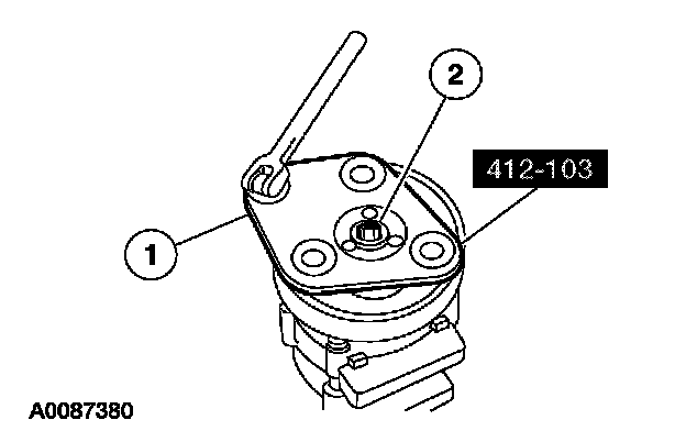 6. CAUTION: Do not use air tools. Damage to the A/C compressor pulley or A/C compressor may result.