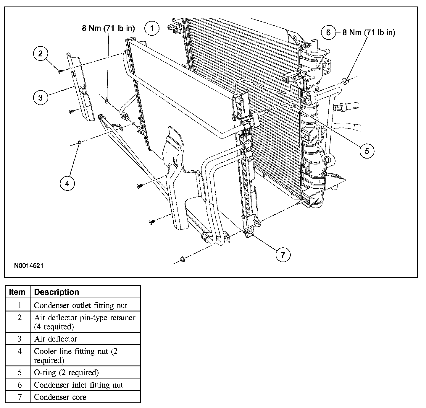 5. Remove the condenser outlet fitting nut and disconnect the fitting.
