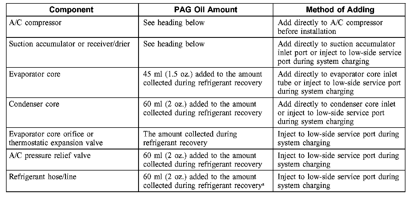 Refrigerant Oil Adding for New Suction Accumulator or Receiver/Drier Installation