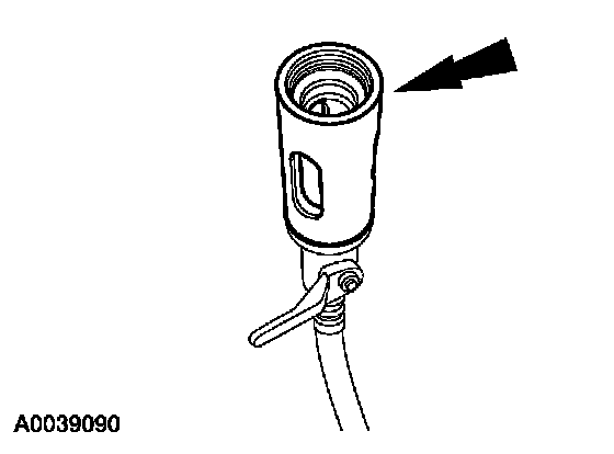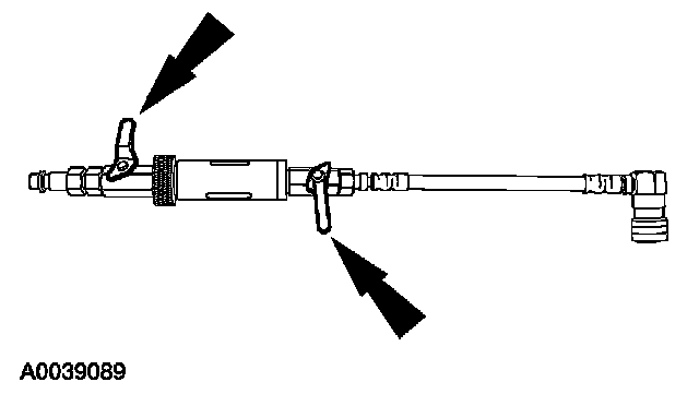 5. Install the dye/lubricant injector between the low-side service gauge port valve and the refrigerant service station or manifold gauge set.