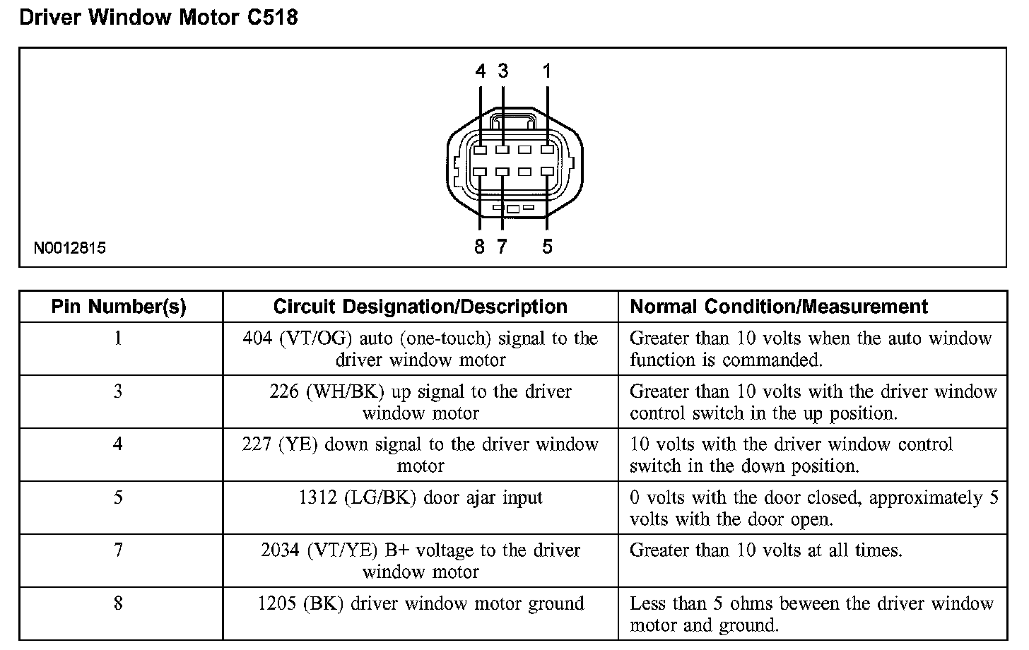 Driver Window Motor C518: