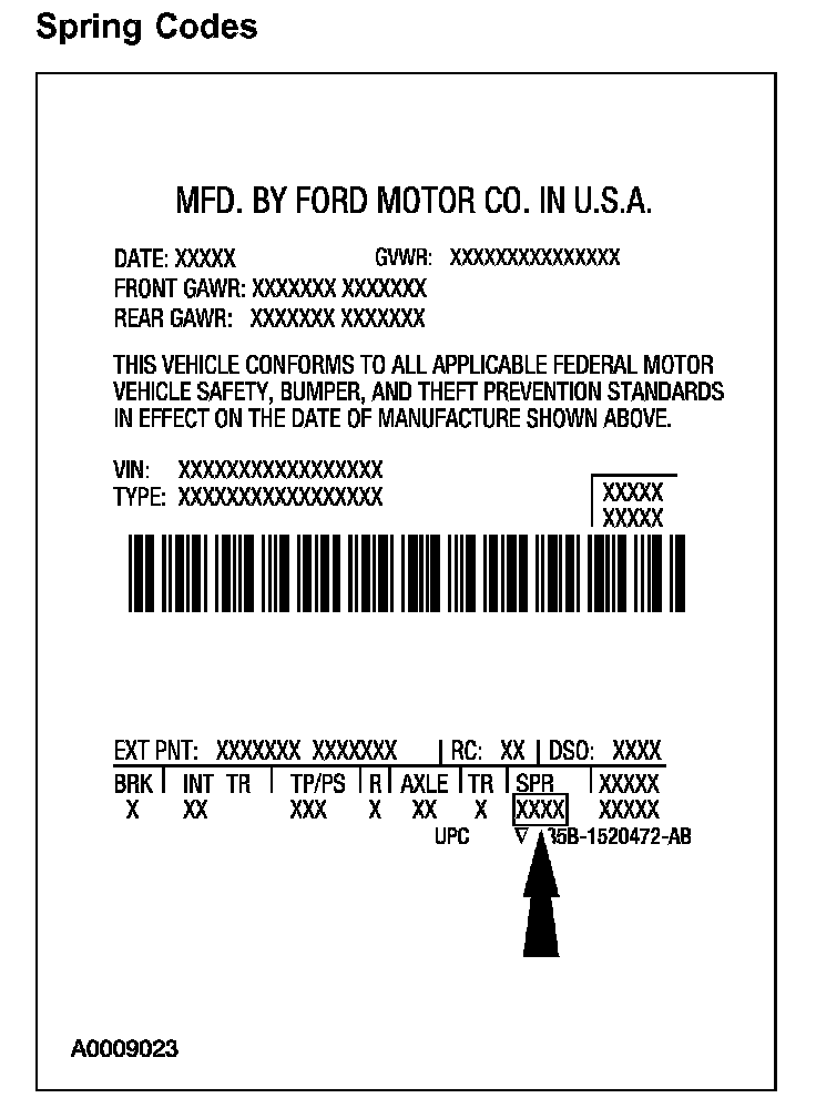 Spring codes list both front and rear spring codes. The first set of characters identify the front springs. The second set of characters identify the rear springs.