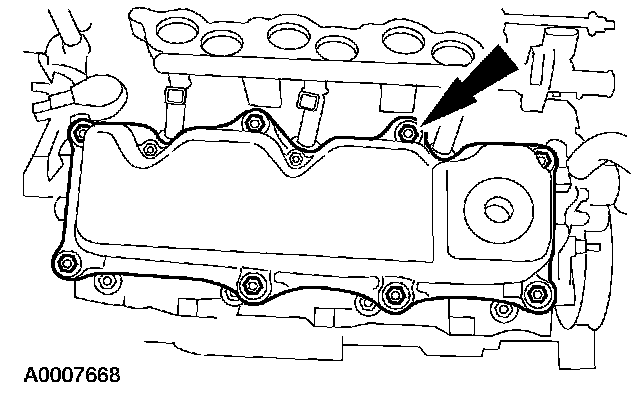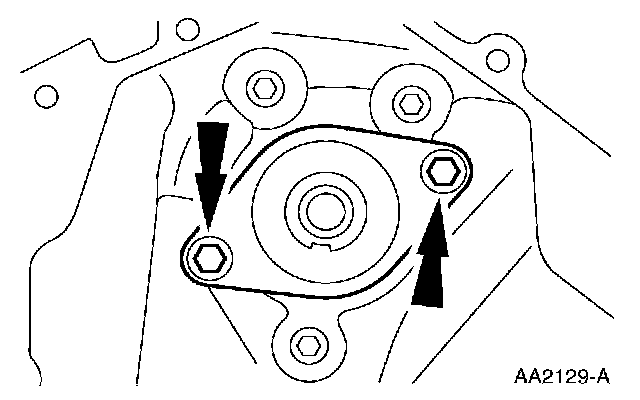 51. Remove the two bolts and the valve tappet guide plate retainer.