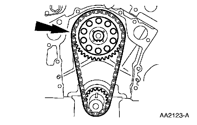 66. Remove the timing sprockets and the timing chain as an assembly.