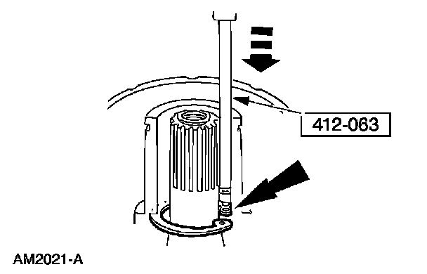 6. Insert the tip of the special tool into one of the snap ring eyes.