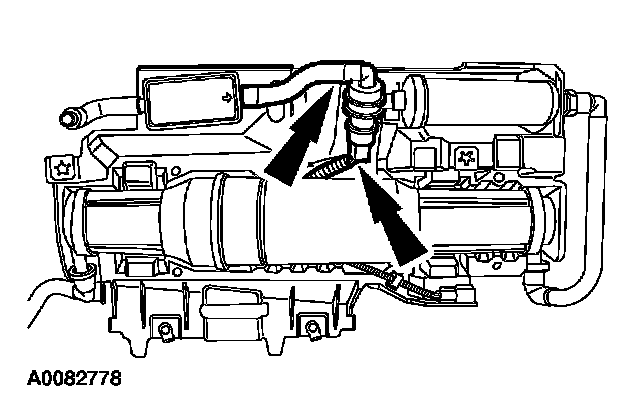 2. Disconnect the tube and electrical connector from the EVAP canister vent solenoid.