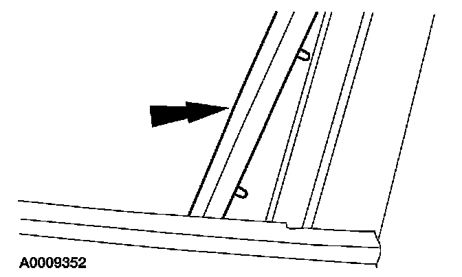 1. CAUTION: Due to the fragile make-up of the front door glass top run, removal is recommended only if the top run is damaged. Unnecessary removal may damage the light-gauge steel carrier insert within the rubber seal of the front door glass top run.